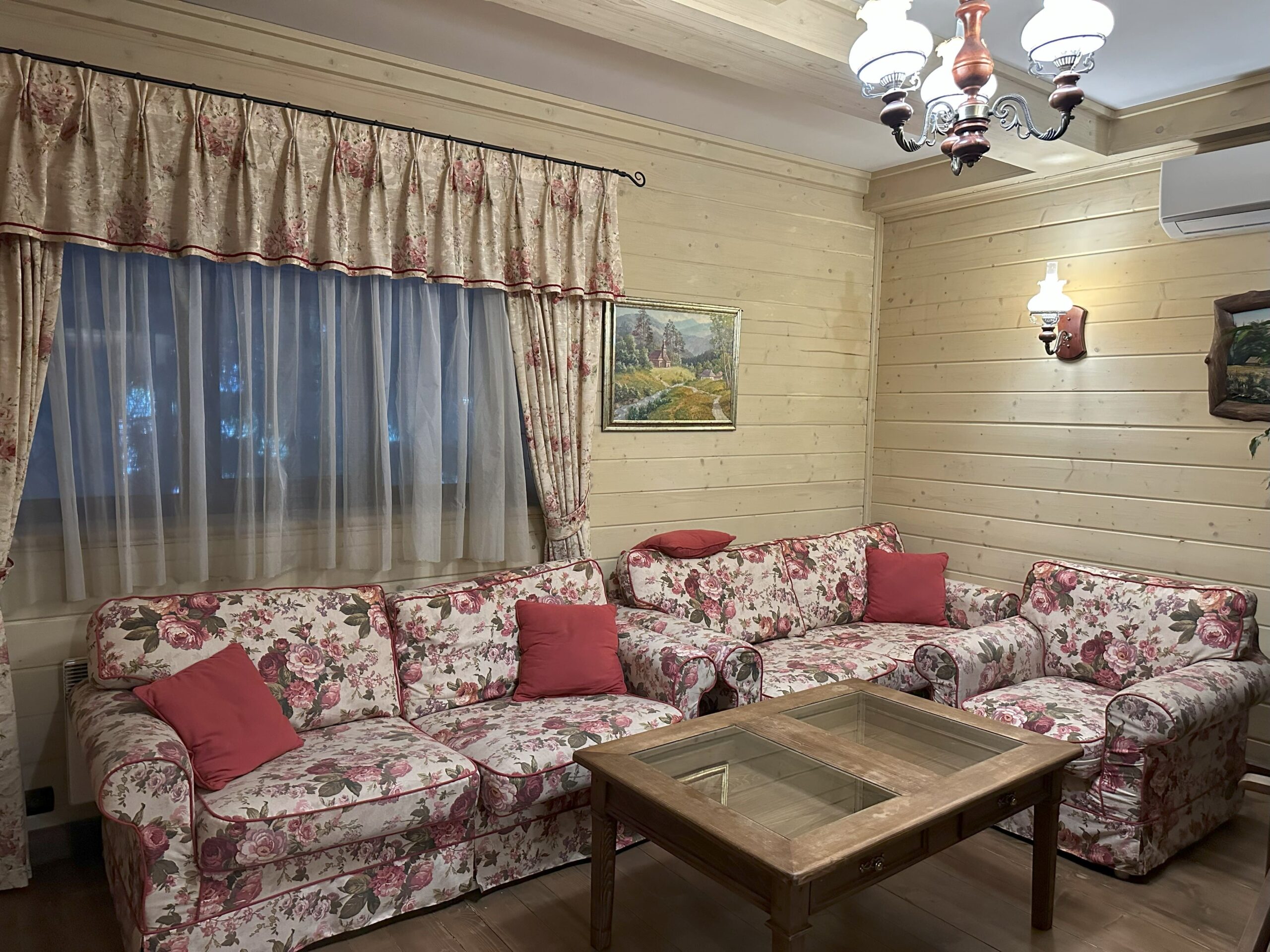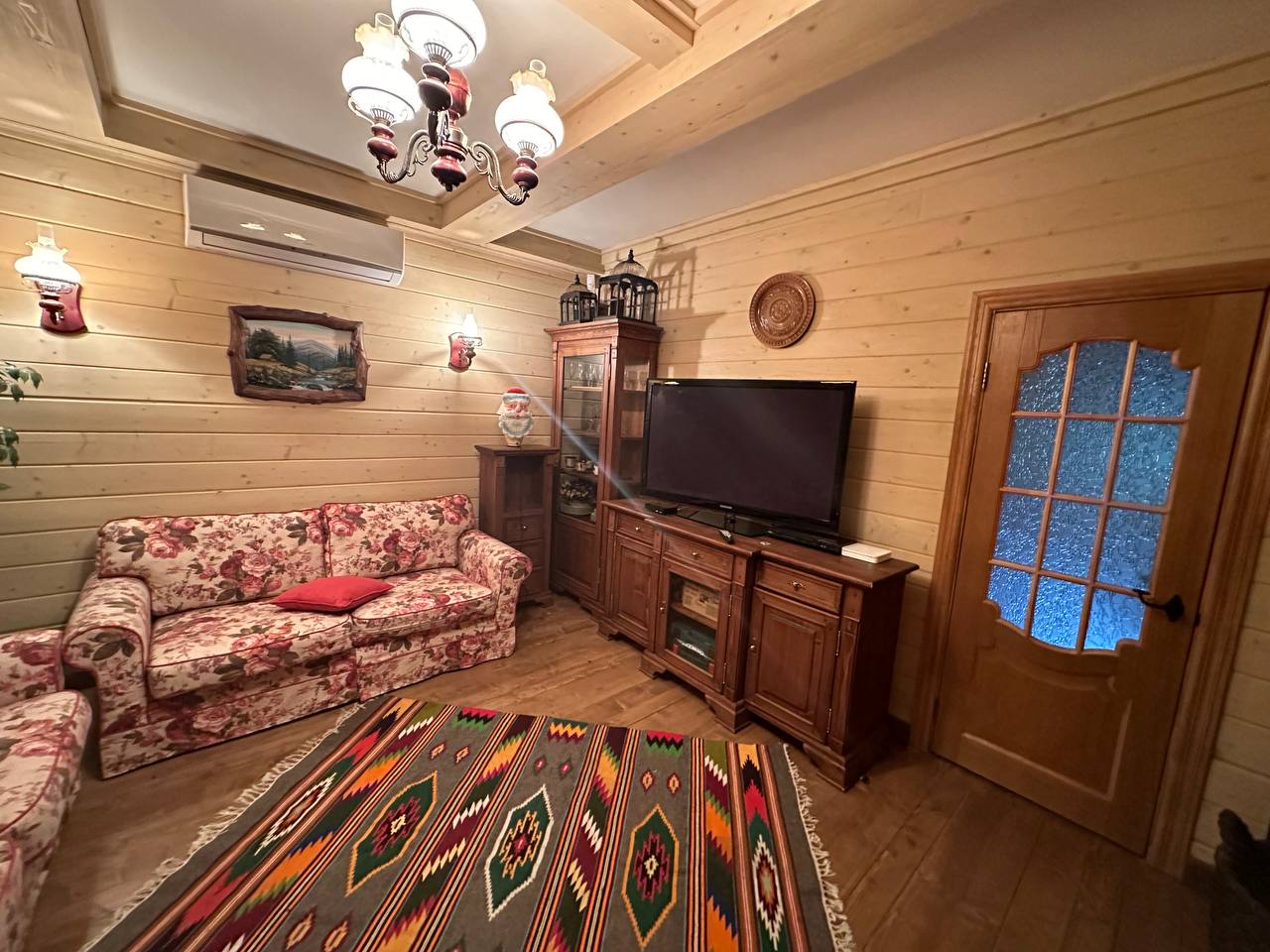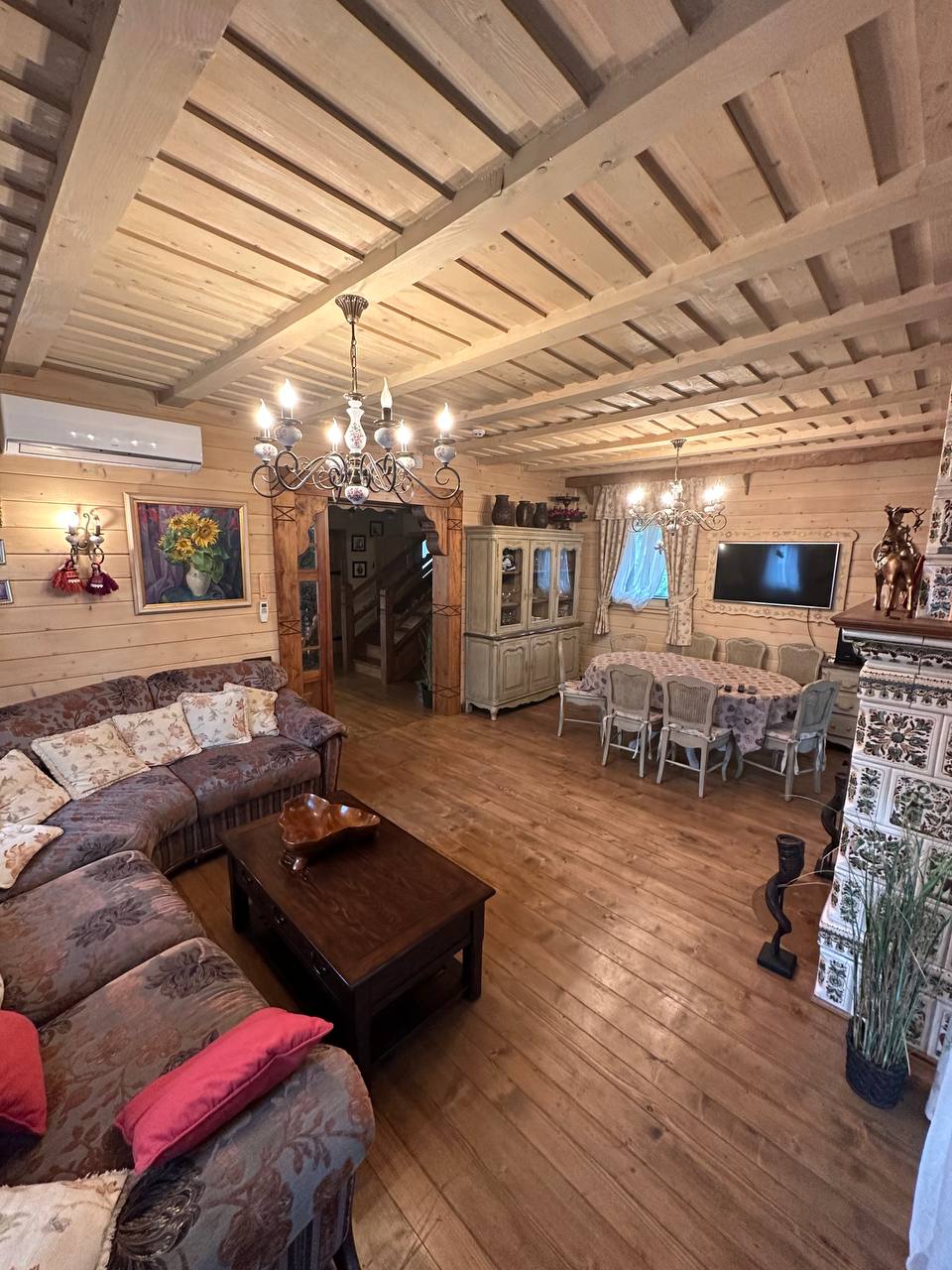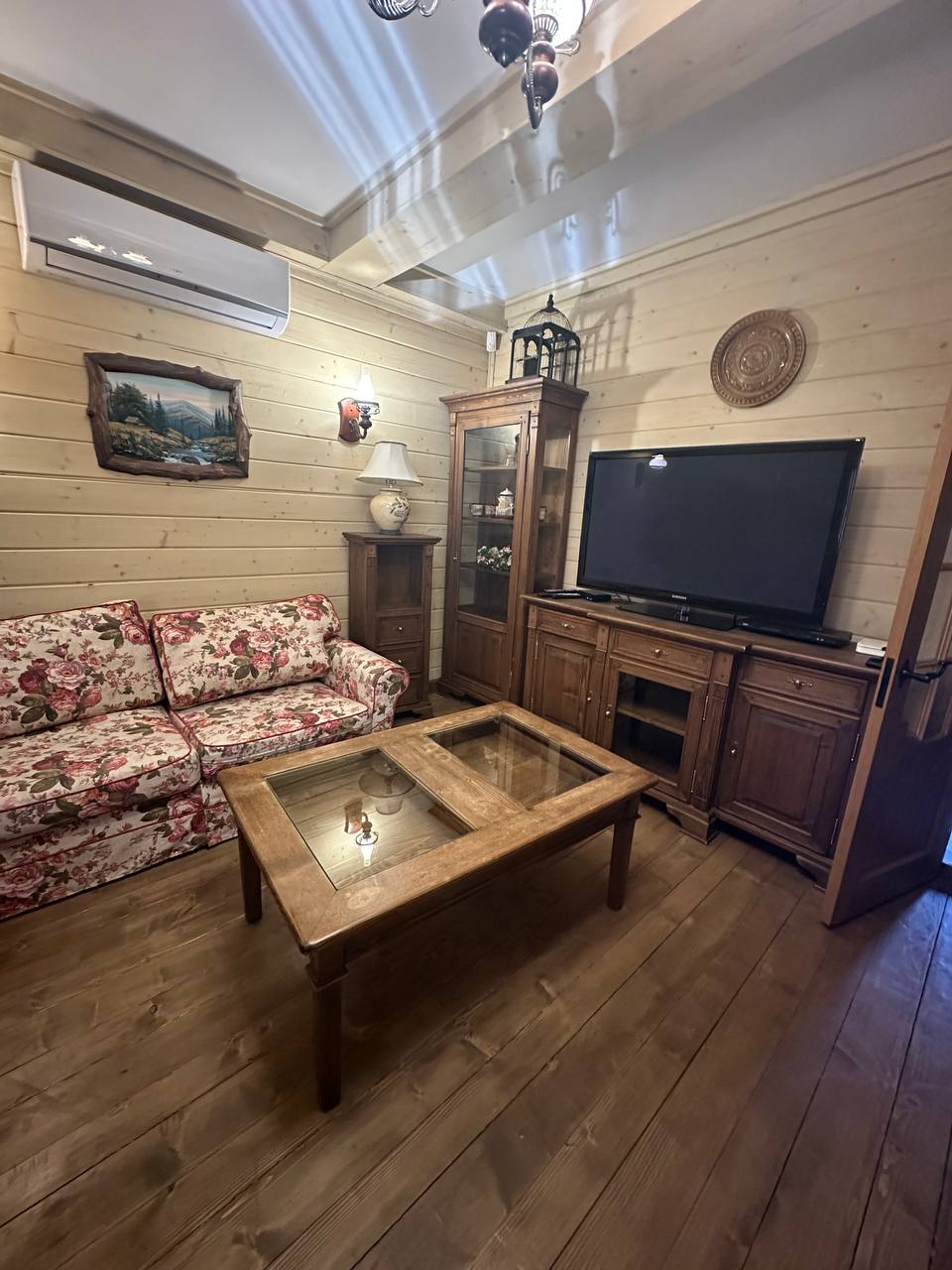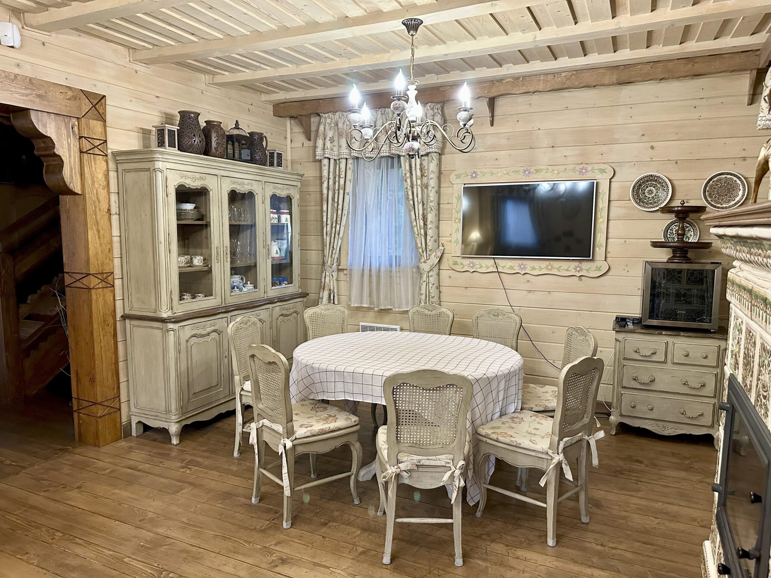 У котеджі є велика вітальня з каміном та великий розкладним диваном + телевізор і супутниковими каналами, обідня зона