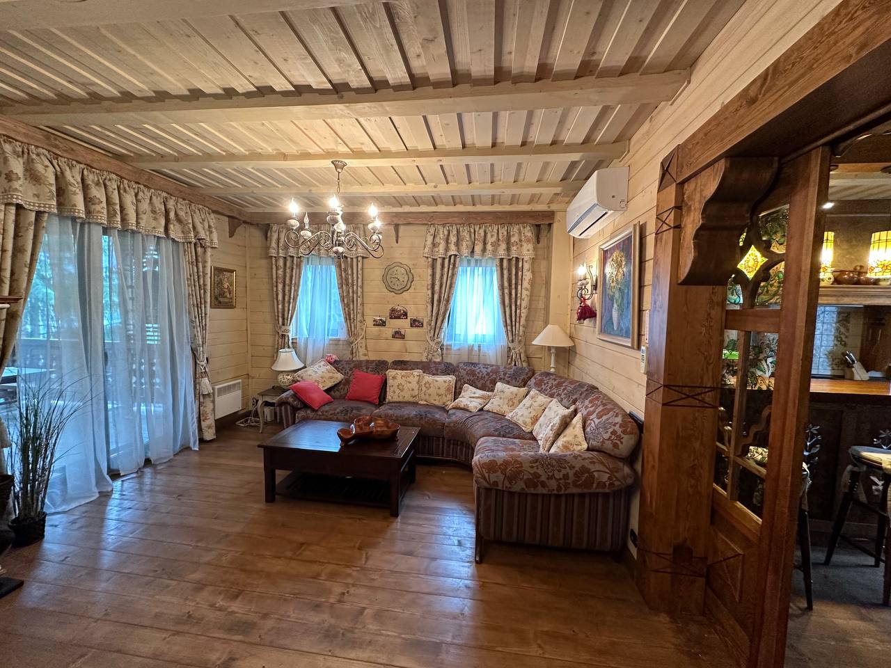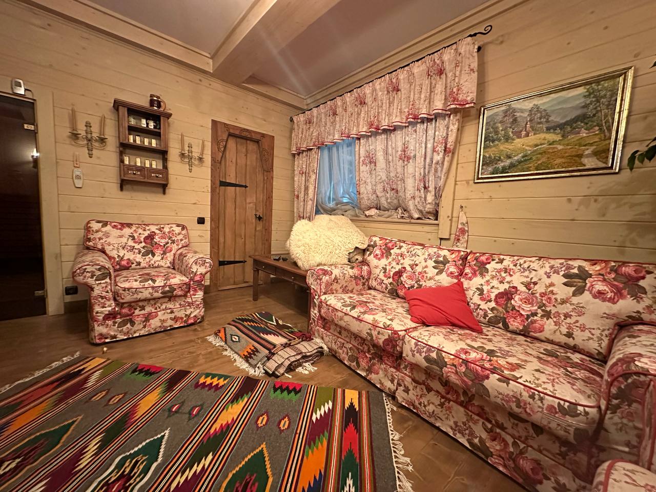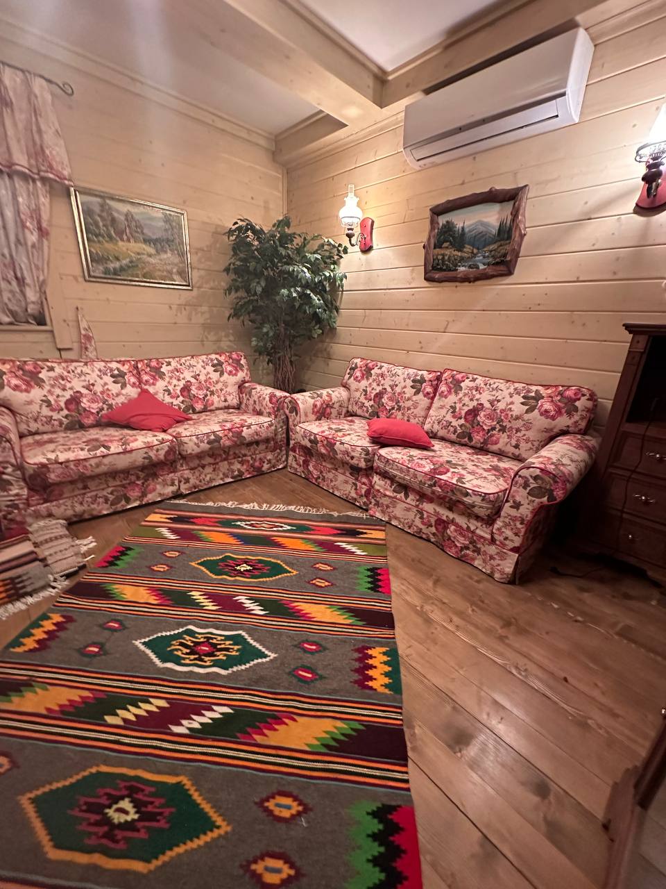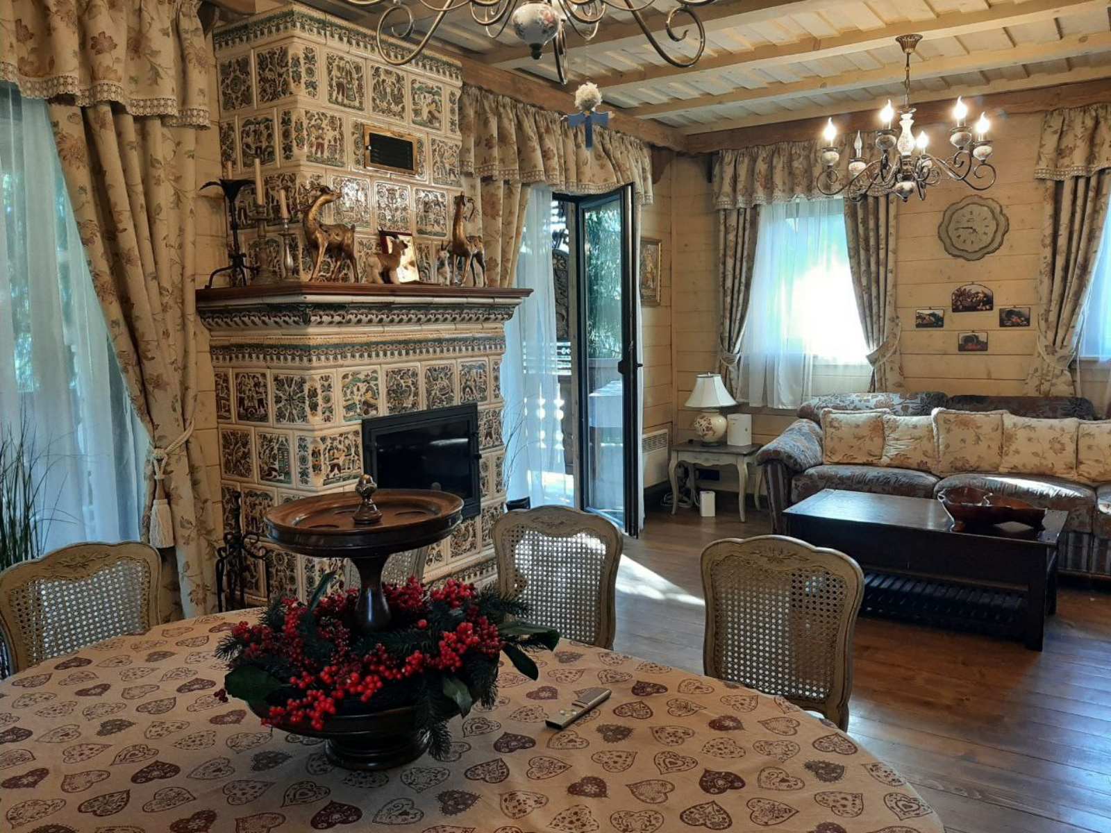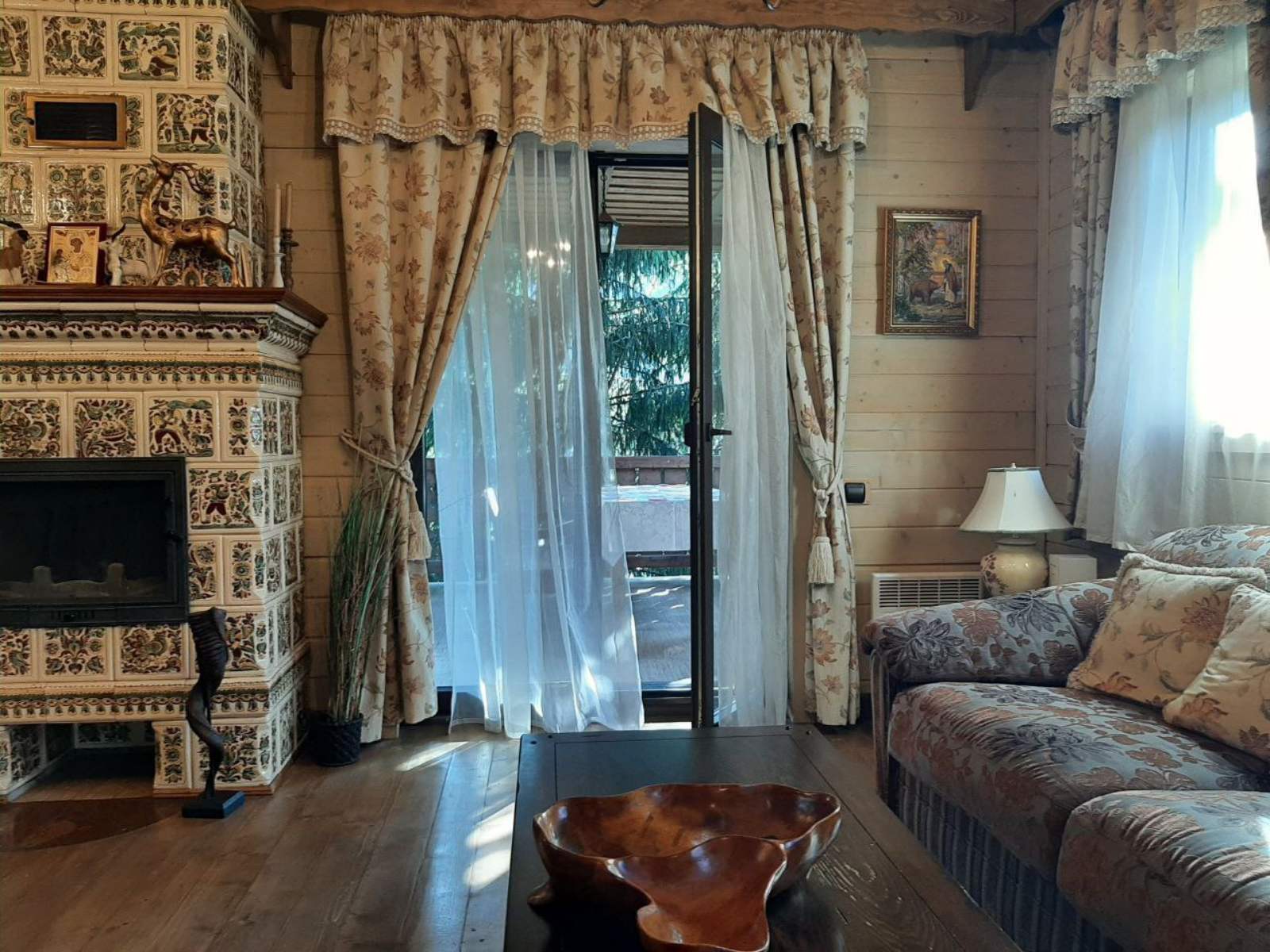 У котеджі є велика вітальня з каміном та великий розкладним диваном + телевізор і супутниковими каналами, обідня зона
