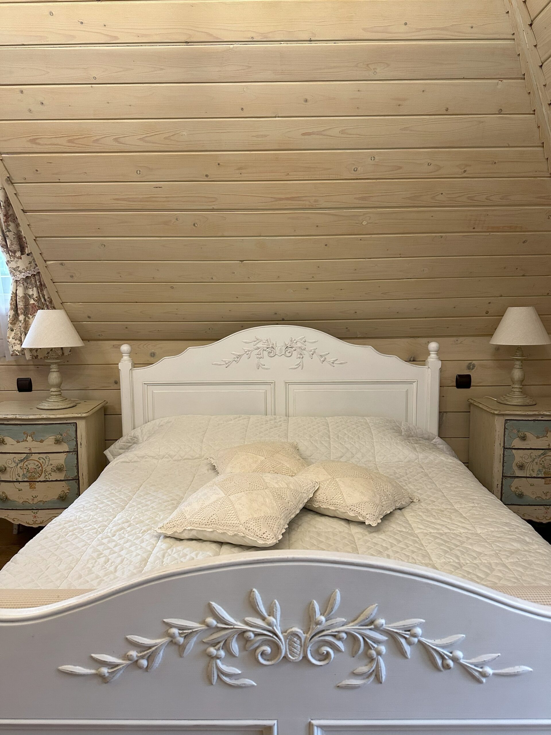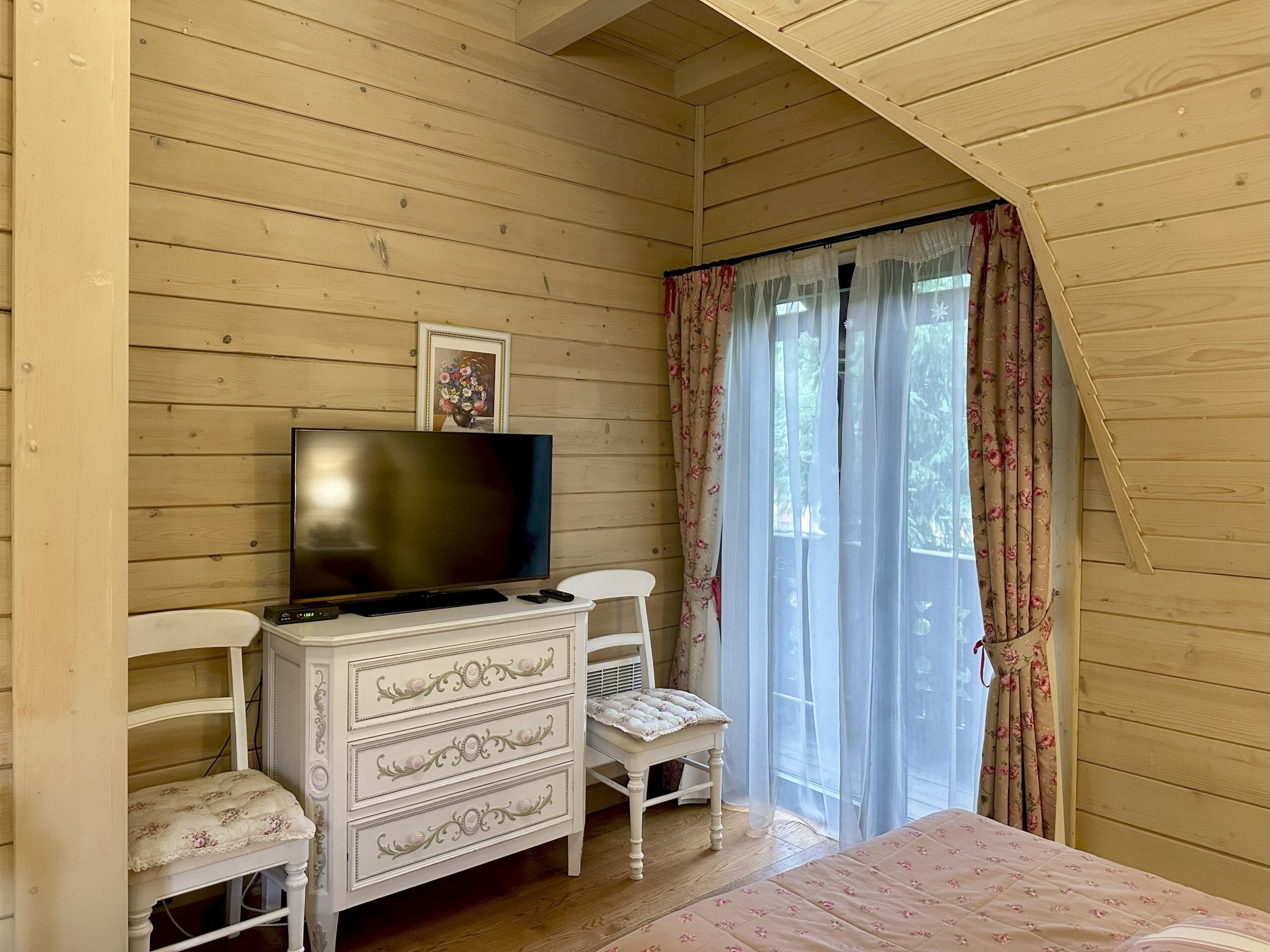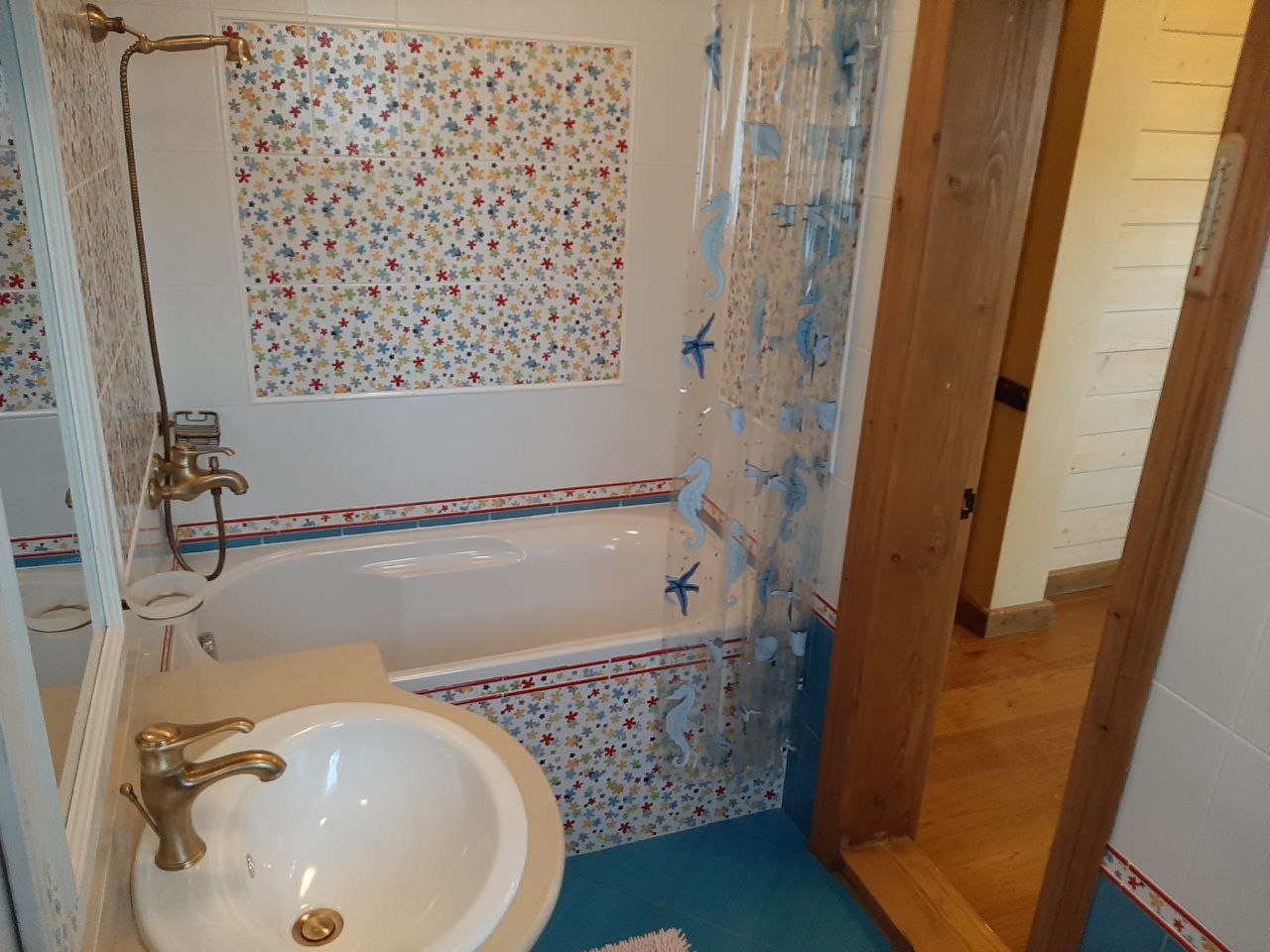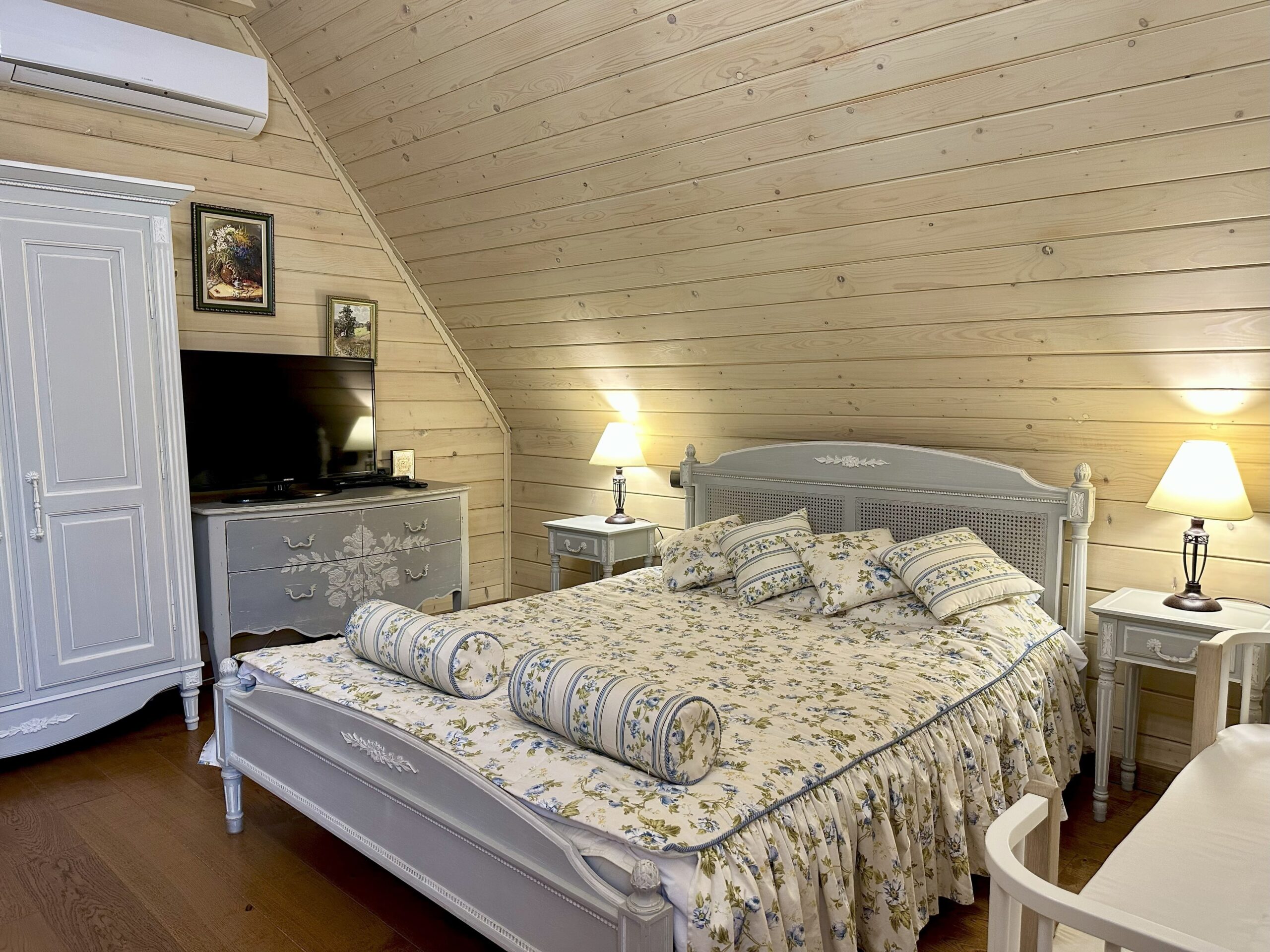На другому поверсі — кухня-вітальня з розкладним диваном каміном та виходом на терасу .Є все необхідне : електрична плита, мікрохвильова піч, холодильник, морозильна камера , духовка , чайник, посуд, мийка, посудомийна машина, каво машина, кондиціонери санвузол (туалет, умивальник).