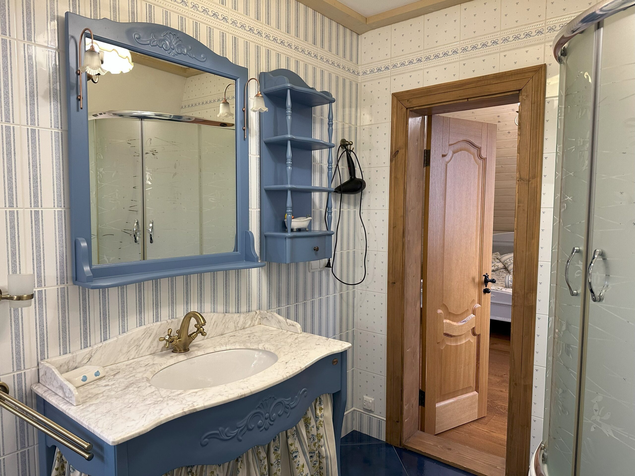 На першому поверсі — хол з вішалкою для одягу , сушка для спорядження; сауна на дровах; двомісна кімната (два розкладних дивани , шафа для одягу, комод, телевізор, кондиціонер); санвузол (душ, туалет, умивальник, фен).