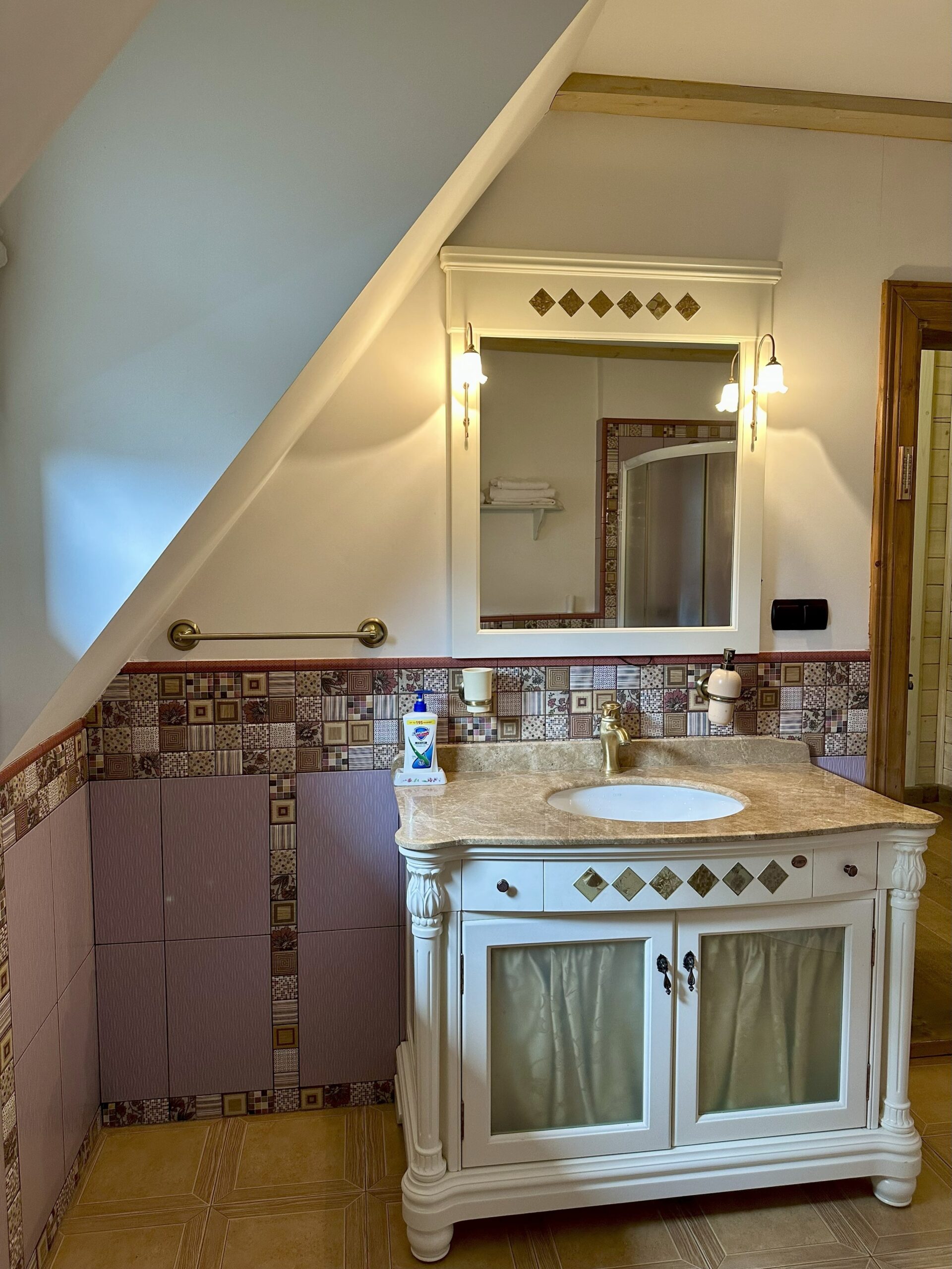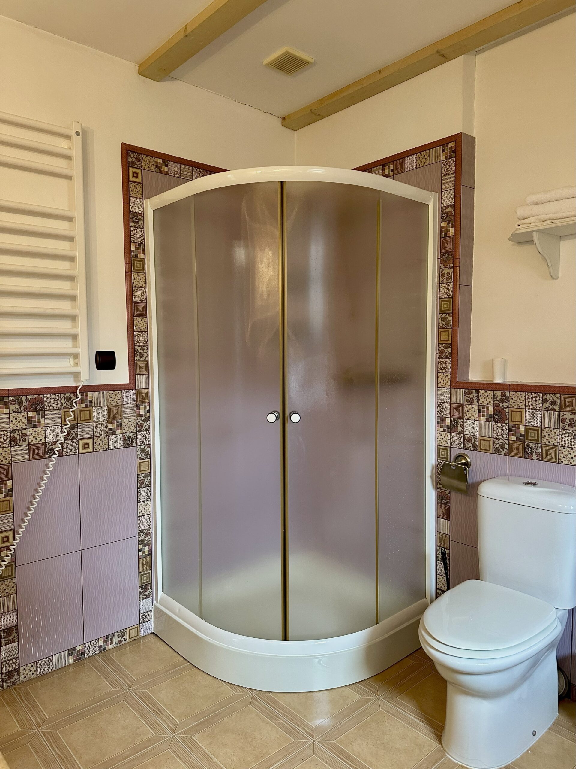 На третьому поверсі — 3 двомісні кімнати (у кожній є двоспальне або 2 односпальні ліжка, які зсуваються, шафа для одягу, комод, телевізор, кондиціонер; у двох кімнатах є балкон; в одній — дитяче ліжечко; санвузол — ванна або душ, туалет, умивальник, фен).