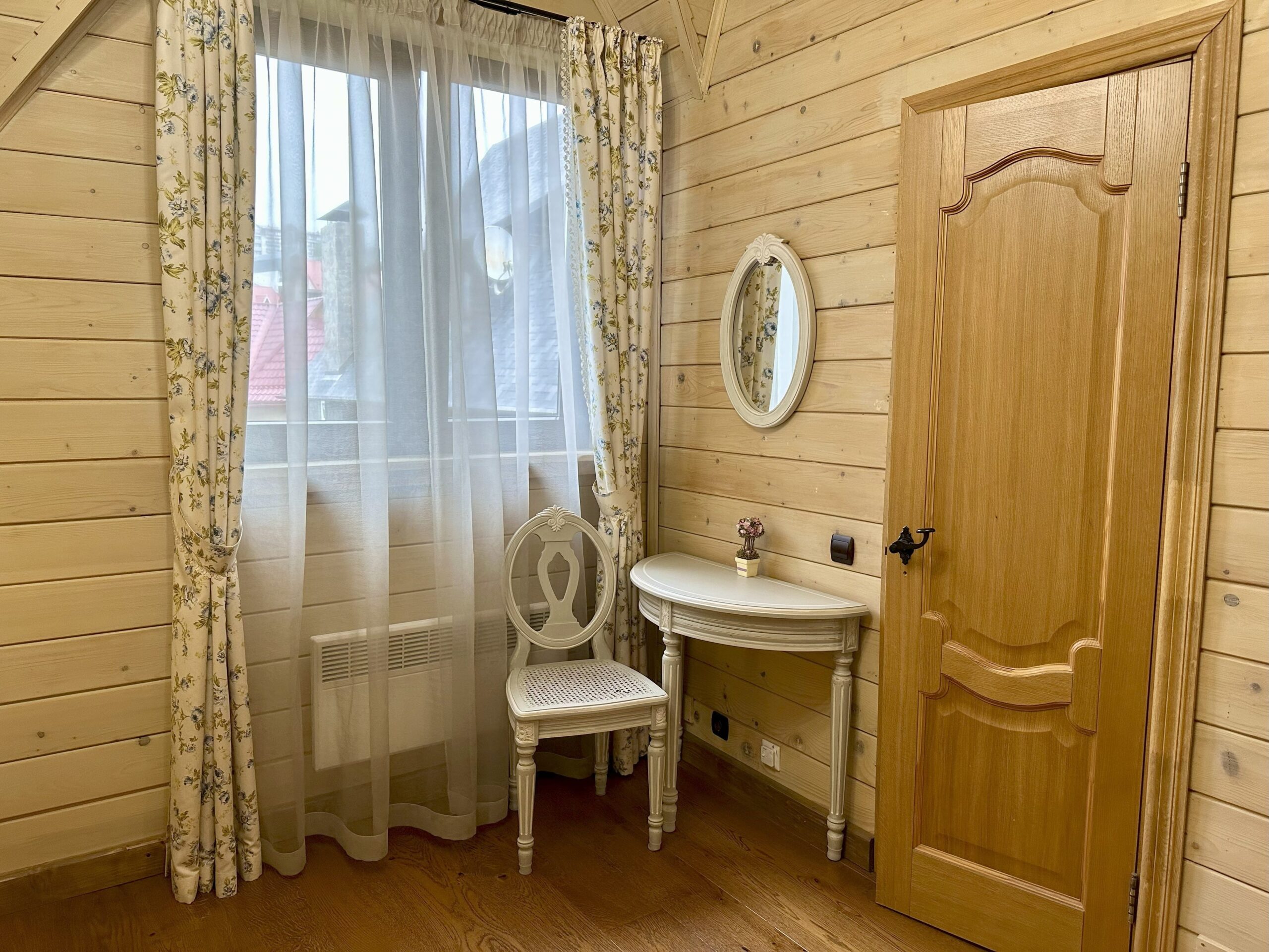 Видовий має велику терасу з каміном, де ви можете насолоджуватися свіжим повітрям і чудовими краєвидами. Він оснащений всіма зручностями для комфортного відпочинку як для сім’ї, так і для компанії. Будинок також має власну баню, де ви можете розслабитися та відновити сили після активного дня на гірських трасах чи прогулянок в горах. Будинок на 3 поверхи 240кв.м. В будинку є: баня, 3 окремі спальні, гостьова кімната та велика вітальня з каміном та великим розкладним диваном, телевізор із супутниковими каналами, обідня зона, повністю обладнана кухня та тераса , 5 санвузлів.